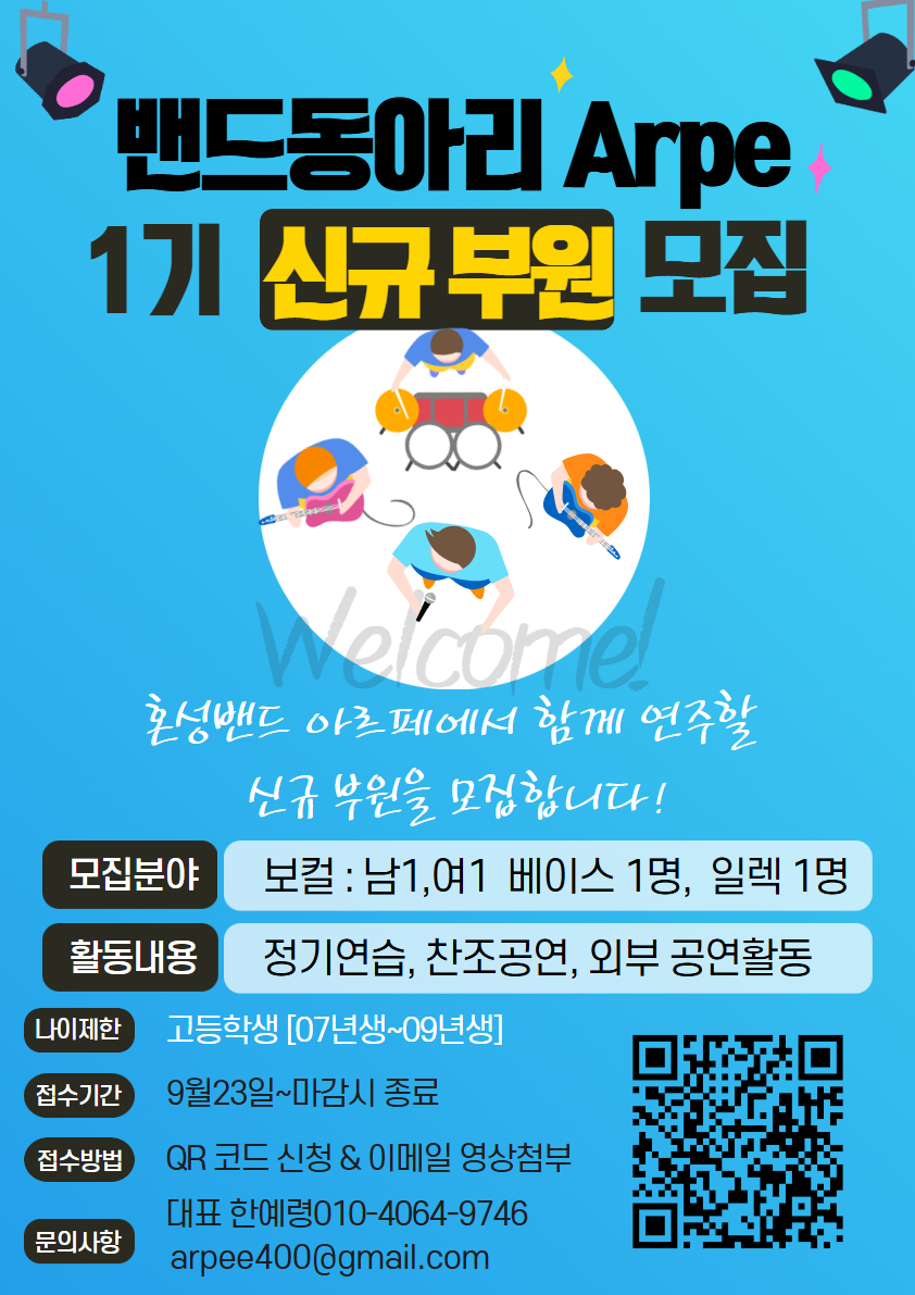 시립목동청소년센터 청소년밴드동아리 ★ Arpe 아르페 신규부원 모집 ★